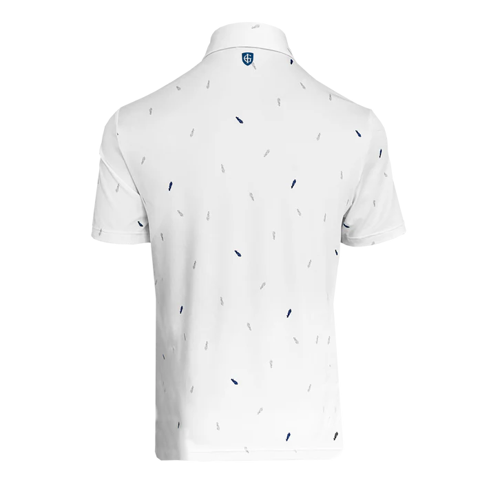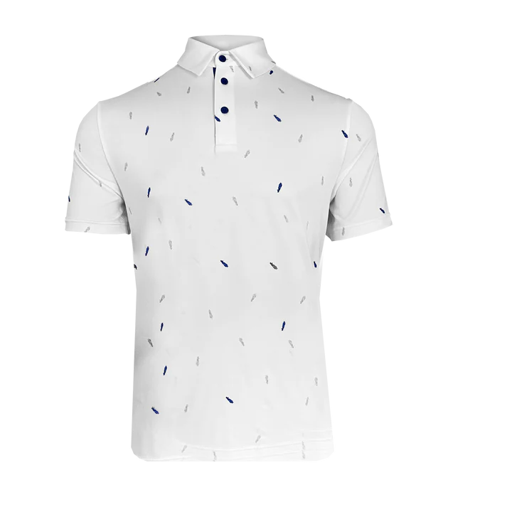 Show off your passion for the game with this Men’s Polo Shirt featuring an all-over golf print. Crafted from 4-way stretch jersey knit fabric, it combines breathable comfort, UV protection, and moisture-wicking finishes. The classic design and playful print make it a versatile choice for any golfer’s wardrobe.