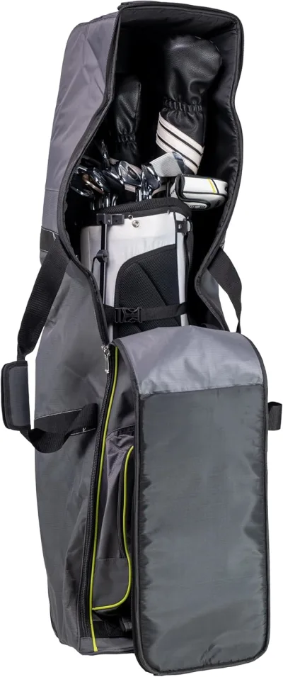 IZZO Golf offers a range of golf travel covers that provide comprehensive protection for your golf equipment. These travel bags are thoughtfully designed to accommodate most golf bags, ensuring a secure fit. Constructed from durable tear-resistant nylon, our golf travel covers effectively safeguard your gear from any potential damage. With ample space inside and a foldable design, these travel covers offer convenient storage for a full-size cart bag with clubs. Additionally, their compact fold-down feature allows for easy storage without occupying much space when not in use. Discover reliable and space-efficient golf travel covers that meet all your transportation needs at an affordable price with IZZO Golf.