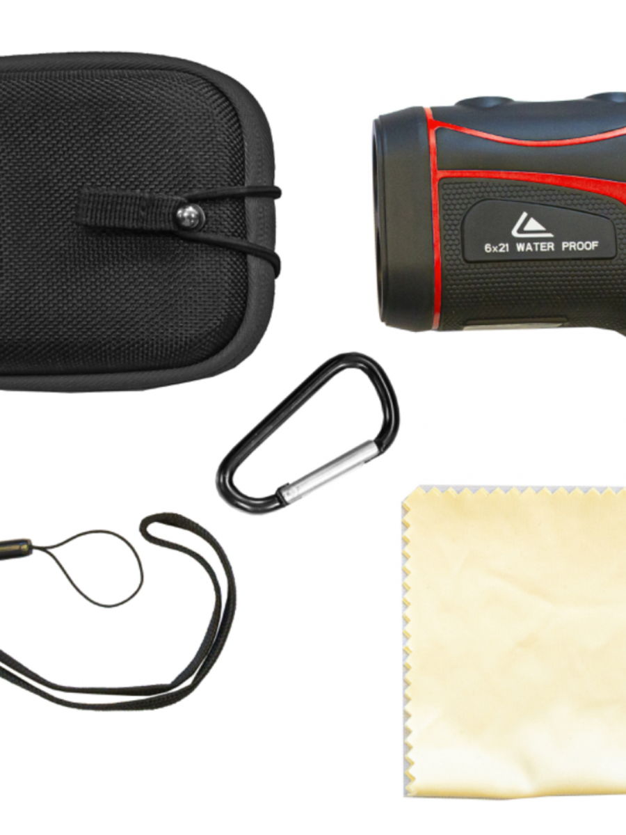 Complete laser golf range finder package, including premium carrying case, CR2 battery, microfiber cleaning cloth and quick start instruction manual with all the information you need. Everything you need is included in the package.
